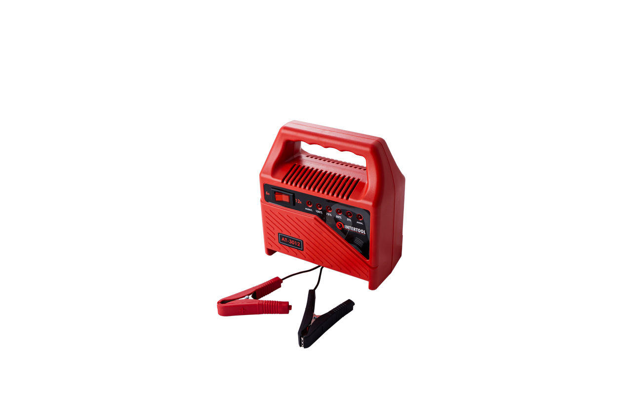 Зарядним пристроєм можна заряджати акумуляторні батареї 6В і 12В. Дана модель зарядного пристрою ідеально підходить для зарядки акумуляторів мотоциклів, легкових автомобілів та інших механічних засобів, що мають акумуляторну батарею c таким типом батарей. Пристрій оснащений системою захисту від короткого замикання, захист від перезарядки і функцією безперервної підзарядки. Зарядний пристрій включається в мережу з напругою 230В і споживає потужність всього лише 70 Вт на годину. Потужність: 70 Вт; Напруга живлення: 230 В; Вихідна напруга постійного струму: 612 В; Постійний вихідний струм: до 6 А; Ємність акумулятора: 60 Ач Виробник - Intertool;Країна виробник - Китай;Тип - Зарядні пристрої; AT-3012